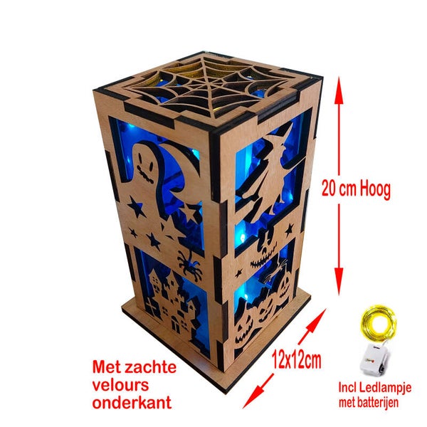 Halloween Lantaarn met blauwe folie - 20 cm hoog